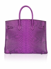 Модная итальянская сумка Phyton Birkin 35 от HERMES завоевывает все больше почитателей во всем мире. При изготовлении использовалась натуральная кожа 1-го сорта выделки и использовались натуральные лекала. Все элементы прострочены шелковыми нитями Gutermann. Фурнитура имеет напыление драгоценных металлов. 3 кармана, один из которых на молнии, позволяет хранить все необходимые вещи. Товар упакован в фирменный мешочек компании.