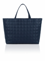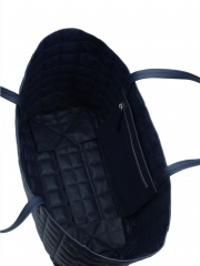 Большая черная кожаная сумка Square Stiched Shopper CHANEL с открытым верхом. Вся поверхность покрыта стеганым рисунком квадратиками, который подчеркивает строгую геометрию сумки. У этой модели форма трапеции, расширяющейся кверху. Она имеет очень вместительное внутреннее пространство. Вы свободно сможете не только взять с собой все необходимые вещи, но и положить несколько журналов, планшетный компьютер или папку с документами. Две классические ручки надежно пришиты к основанию сумки и позволяют носить ее в руке или на плече. Дно оформлено в виде почтового конверта. Модель прекрасно подойдет для работы или прогулок по магазинам.