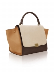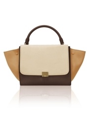 Компания Celine, буквально взорвавшая мир моды сумками-трапециями, представила ещё одну, на редкость яркую и креативную, весьма в духе современных звёзд эстрады — с такой, например, легко представляется королева тверка Майли Сайрус или поп-звезда Кэти Перри. При этом сумка достаточно элегантна, чтобы вас с ней в руках принимали не за тверк-диву, а за весьма серьёзную девушку с хорошим вкусом. Выполнена сумка в сочетании красного и фиолетового цветов с белыми «крыльями», характерными для сумки-трапеции, что прекрасно дополняет золотистая пряжка. Носится она на руке, на плече или через плечо, а ещё — довольно вместительна.