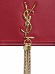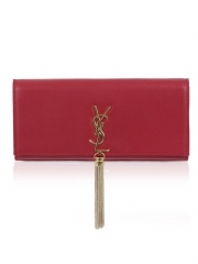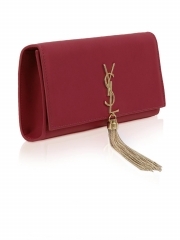«CLASSIC MONOGRAM SAINT LAURENT TASSEL CLUTCH» — это очаровательный клатчик натуральной кожи насыщенного серого оттенка — даже, можно сказать, с фиолетовым отливом. Он украшен золотистой монограммой — логотипом компании Ив Сен-Лоран, выпустившей «Классик Монограм Сен-Лоран Тассел Клатч», а монограмма соединена с потрясающе красивой подвеской из золотистых цепочек. Ручки у клатча нет, что весьма удобно — вдруг вам, как Золушке, придётся убегать с бала, сумка на плече не будет мешать. Это, конечно, шутка, но с таким изысканным клатчем вы на любом балу, то бишь званом вечере, будете не менее блистательной, чем сказочная Золушка.
